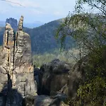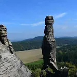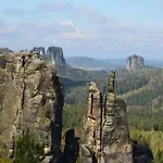 Ferieneinrichtungen Haus Am Stein Bei B Villa ligt op 3 km afstand van Papststein en nodigt gasten uit om te genieten van een terras. Gasten kunnen genieten van kanoën, wandelen en vissen in de villa, gelegen op afstand van 6 km van de Basteibrug.